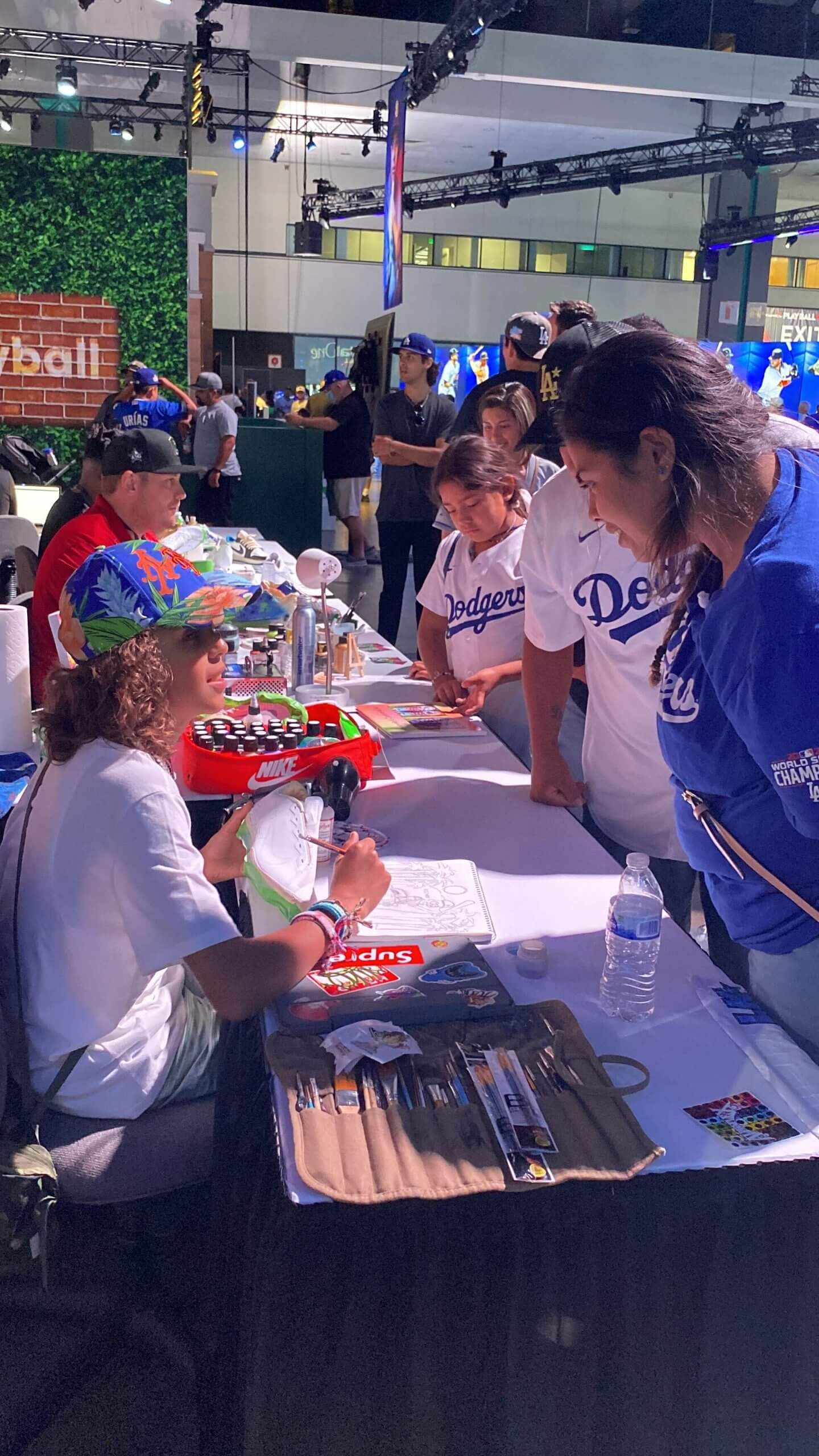 Before he knew it, he was swarmed by curious students as he gave a live demonstration painting a cleat. They asked questions, watched with intent, and some even got the chance to add a few strokes of paint with Taveras’ guidance.