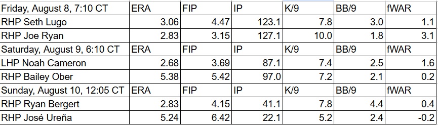The Twins have split their six games since the trade deadline, so they haven’t just rolled over to die. But this is a pretty depleted team that the Royals should take advantage of. Joe Ryan is a tough pitching assignment for the lineup, but Seth Lugo should give them a chance to stay in the game before the Twins hand things to an unproven bullpen. If the Royals can pull that game out, they should like their chances at taking the series and giving themselves a winning road trip, or even sweeping the Twins.