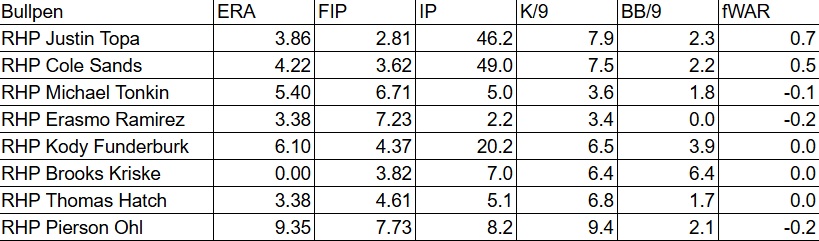 The Twins traded five of their top relievers away, leaving them with a motley assortment of arms. Michael Tonkin got the first save opportunity on Sunday, but when he faltered, they let Erasmo Ramirez get the final out. Justin Topa earned the save on Tuesday. So the late innings are probably a fluid situation for the Twins. Cole Sands has been one of their best relievers the last few seasons and will likely be the setup man. The Twins picked up Thomas Hatch off waivers after he made one relief appearance with the Royals.