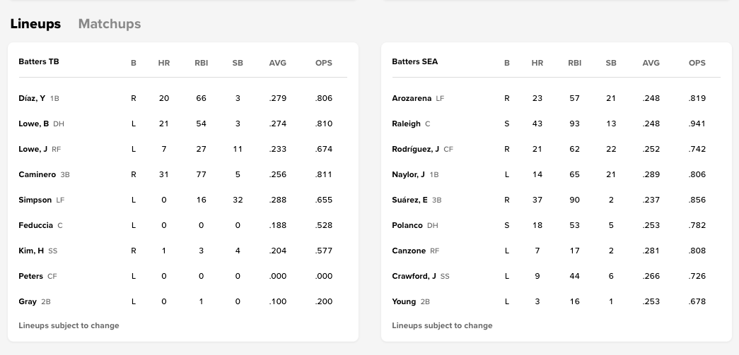 Joe Boyle goes for the Rays. He’s gone back and forth between starter and reliever this year but appears to be in the rotation for now. He has a 2.30 ERA, 3.56 FIP and 4.61 xFIP — lots of strikeouts and walks but few home runs allowed. David Adler recently wrote for MLB.com about Boyle’s new arm slot that appears to be helping the 6-foot-8, 100 mph hurler.