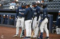 A few players huddle with the coach during a break in the Penn State baseball game against Delaware at Medlar Field at Lubrano Park on Tuesday, April, 15, 2025 in University Park, Pa. The Hens beat the Nittany Lions 13-3.Â