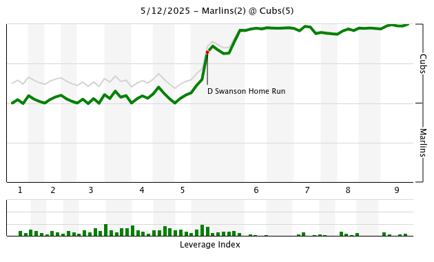 Up Next: Game two of the three game set Tuesday night in Chicago. Ben Brown (3-3, 4.95 36⅓ IP) starts for the Cubs. Ben has fairly striking home/road splits so far this season. I don’t particularly think there is a reason for that. He hasn’t run into wind blowing out problems or anything really. So I suspect he is due for a good one at Wrigley. This Marlins lineup isn’t particularly fearsome.