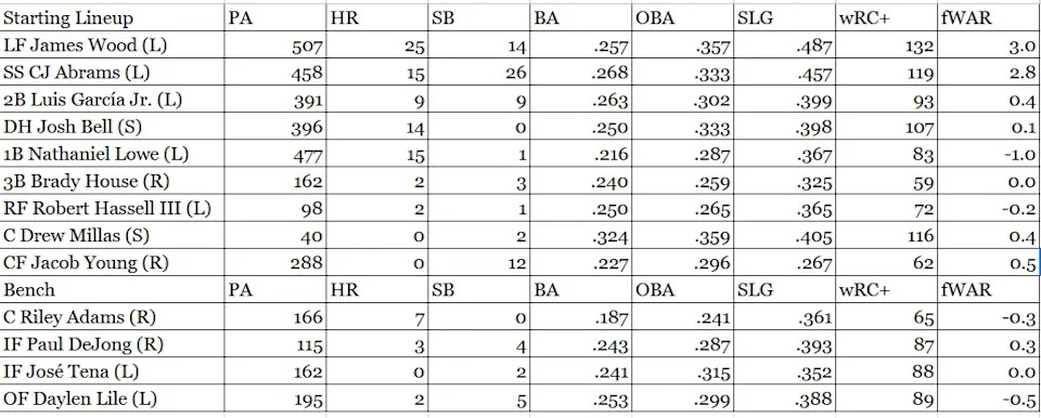 Nationals: 4.26 runs scored/game (20th in MLB), 5.48 runs allowed/game (29th)