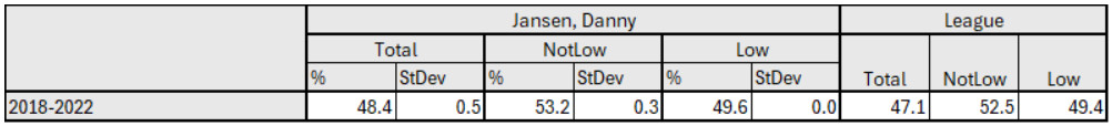 Jansen kept this pattern throughout both 2023 and 2024, and this is where we start to get into small sample sizes that make rock solid narratives slippery. For 2023 Jansen was an above average framer, and secured an average strike rate on low pitches. For 2024 he was a below average framer, with a below average strike rate on low pitches. Taken in the aggregate across both years, it’s difficult to see the impact of putting the knee down.