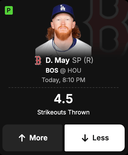 Dustin May less than 4.5 strikeouts thrown