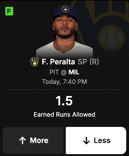 Freddy Peralta less than 1.5 earned runs allowed