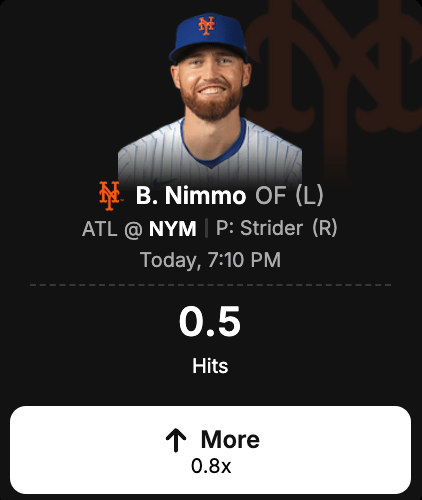 Brandon Nimmo more than 0.5 total hits
