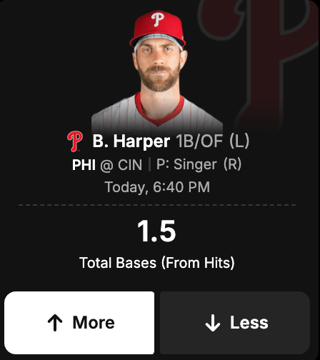 Bryce Harper more than 1.5 total bases