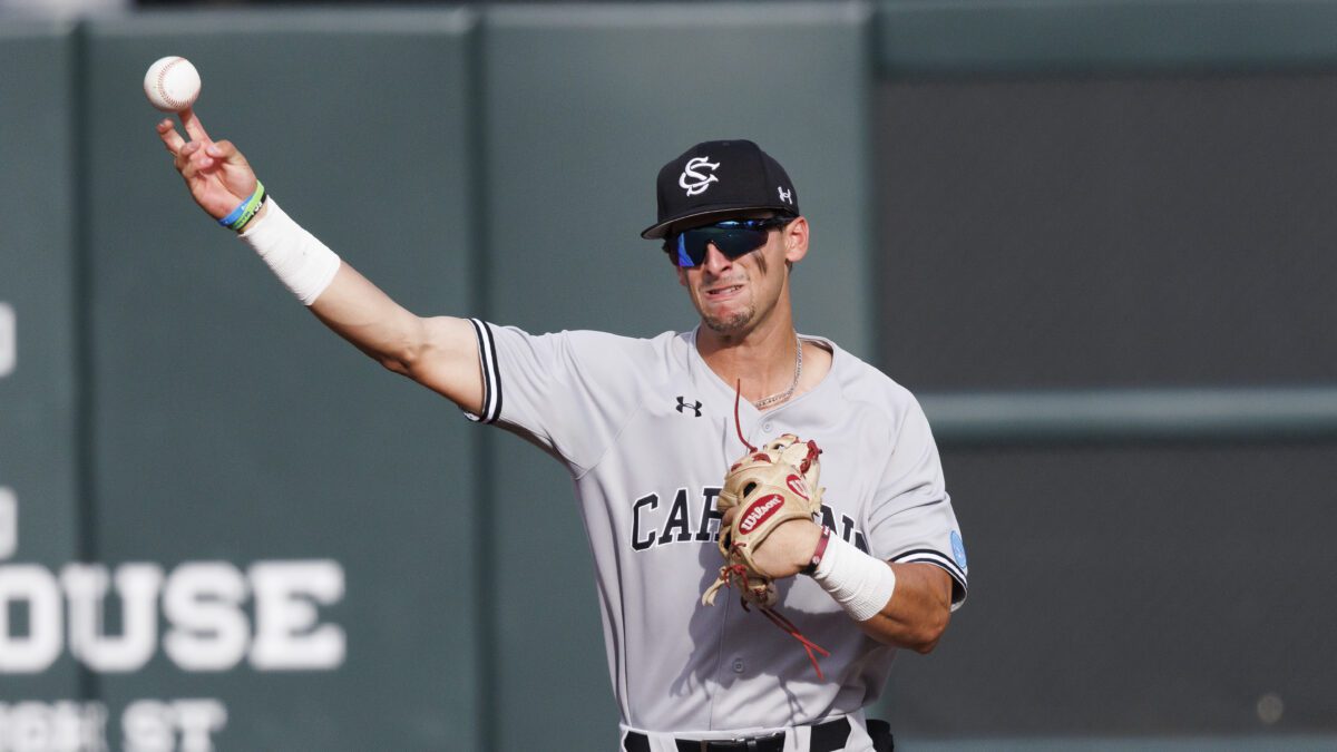 Photo: South Carolina’s Will Tippett (13) makes a throw during an NCAA regional baseball game on Saturday, June 1, 2024, in Raleigh, N.C. (AP Photo/Ben McKeown)