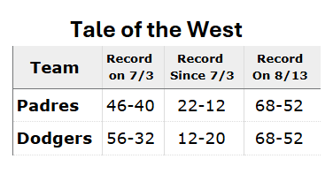 And it does deserve to be acknowledged that they have made up nine games on the Dodgers since July 3.