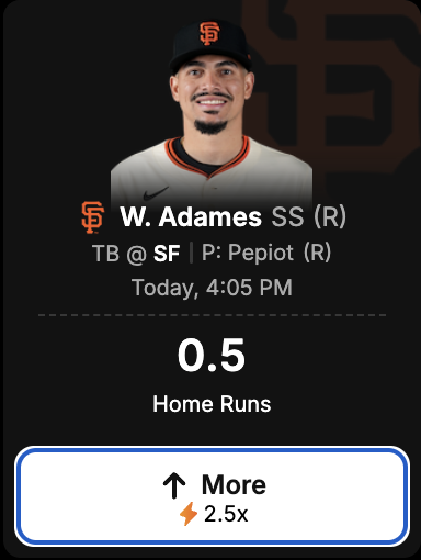 Willy Adames has notched a home run already in this series and is up to 19 on the season. He has hit 14 of these 19 home runs against right-handed pitching with a .422 slugging percentage and .329 wOBA. The Giants’ shortstop has one home run in five at-bats against Pepiot in his career, and the wind will be pushing out to left-center field at 12 to 15 miles per hour tonight.