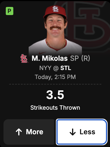 Miles Mikolas Less Than 3.5 Strikeouts Thrown