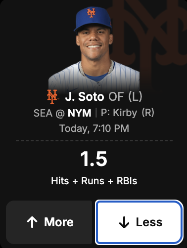 Juan Soto Less Than 1.5 Hits + Runs + RBIs