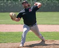 Utica’s Brock Wanninger gets ready to throw a pitch during the A’s 7-2 Home Talent Sunday League loss to McFarland on July 27 at Utica Field.