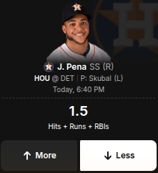 Jeremy Pena less than 1.5 hits + runs + RBIs