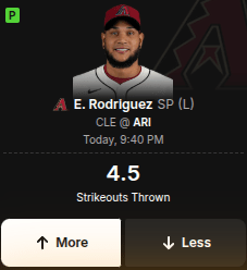 As long as Rodriguez doesn’t get shelled tonight, he’s likely to rack up a few K’s. Tuesday’s matchup sees the Guardians travel to Phoenix. Other than All-Star Jose Ramirez, this lineup doesn’t have much in terms of high-end talent. Against left-handed pitching, Cleveland hitters have recorded the league’s sixth-most total strikeouts (318). Look for Rodriguez to deliver plenty of punch outs tonight.