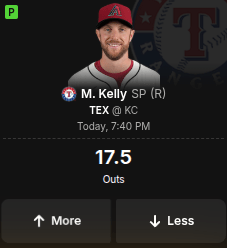 Even when Kelly isn’t at his best, he does manage to eat innings. The right-hander has tossed 144.2 frames this season, the 19th-highest mark in baseball. There’s a good chance he goes deep once again on Tuesday. Tonight, the Rangers will take on a pitching-oriented Royals squad. At the plate, Kansas City is averaging the American League’s fewest runs per game (3.80). Keeping that in mind, Kelly should be able to go at least six tonight.