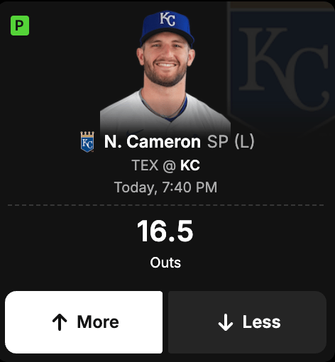 Cameron enters Wednesday on a high note, allowing just one earned run over his previous 11 innings pitched. Tonight, he’ll take on a struggling Rangers offense. Since August 1st, the team is averaging the fourth-fewest runs per game in baseball (3.82). To make matters worse, Texas owns the league’s third-lowest OPS against left-handers (.629). Kansas City’s breakout southpaw is poised for yet another terrific performance in this one.