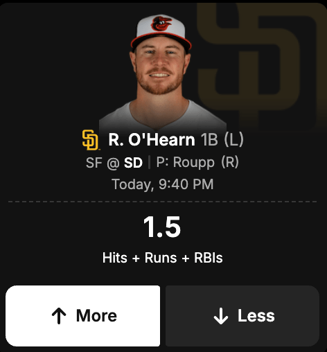 Ryan O’Hearn more than 1.5 hits + runs + RBIs