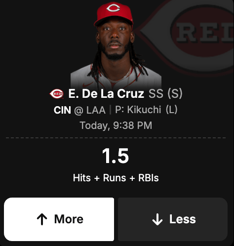 Elly De La Cruz more than 1.5 hits + runs + RBIs