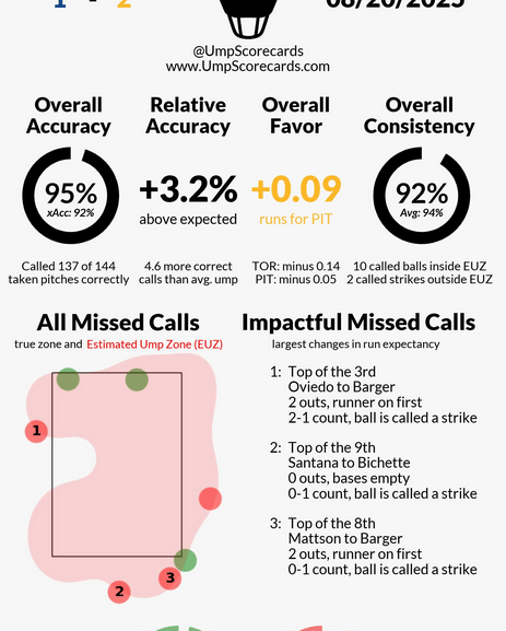 Yesterday’s Umpire Scorecard (I don’t know why it cuts off…https://x.com/UmpScorecards/status/1958537432858612216) Vic Carapazza was about as good as he gets. That ball called a strike to Barger in the ninth was a killer.