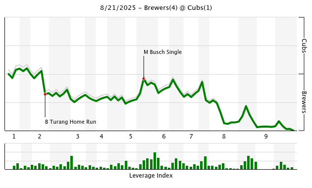 Game 128, August 21: Brewers 4, Cubs 1 (73-55)