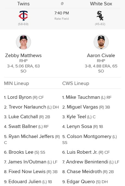 Tonight’s Sox starter, Aaron Civale, has been traded midseason each of the past three years. He’s pretty mediocre as an MLB pitcher, with the usual disclaimer that a mediocre MLB pitcher is better at baseball than most of us will every be at anything. That said, his mediocrity means the Twins will probably sign him next year after they’ve traded Joe Ryan. He throws in the low-90s, relying usually on his cutter, sinker, slider, and curve. YTD digits: