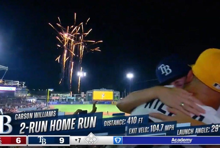 With Hunter Feduccia on first, Williams launched his first home run during his first major league game. The Rays were once again up by three, 9-6, and the entire mood of the game changed. Check out this video for the home run and also for the family celebration in the stands: