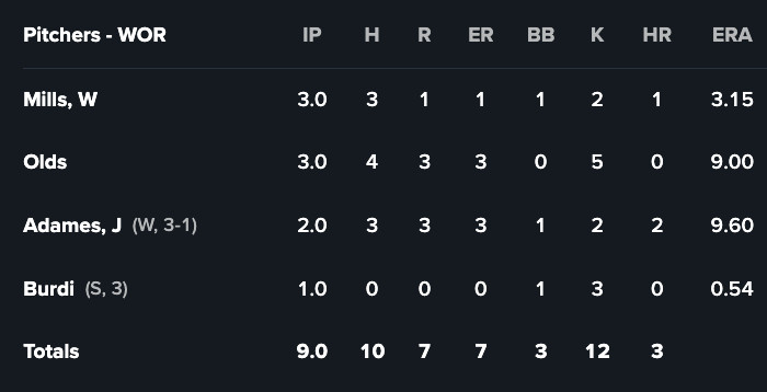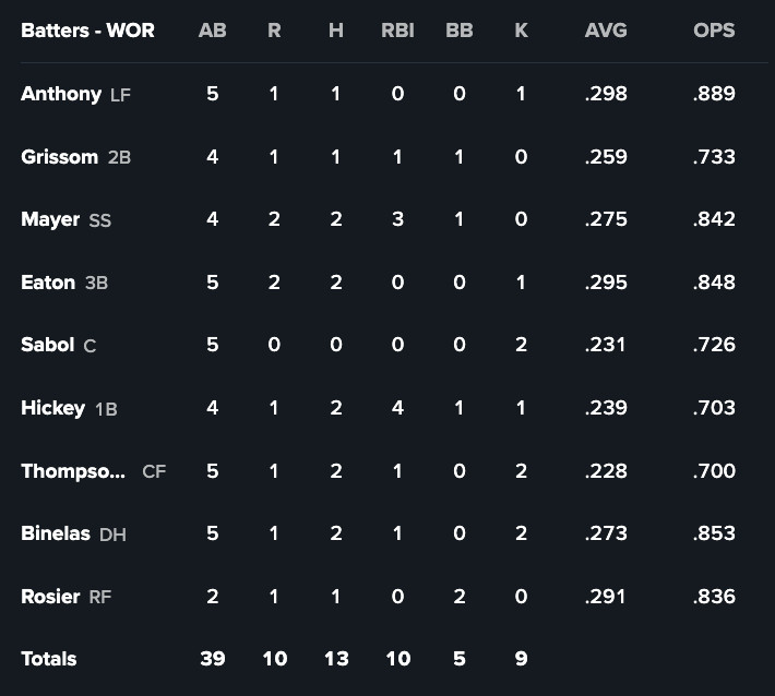 Worcester: W, 10-7 (BOX SCORE)