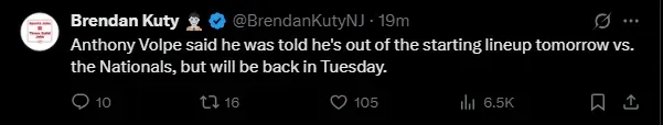 It’s worth noting that Volpe has been in this situation before, having been removed from the lineup for a period earlier in the season. That break gave him some room to breathe, and he returned in better form, but he unfortunately fell back into a slump. It’s probable that resting will help him once again.