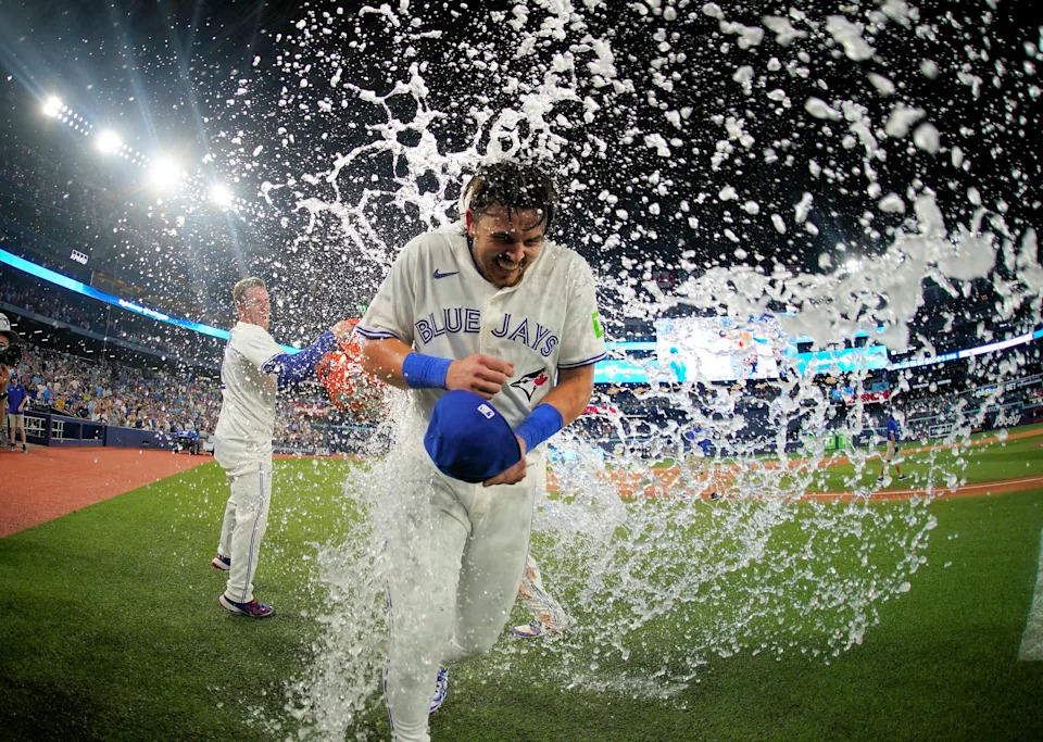 July 12: Minnesota Twins outfielder Byron Buxton is doused after hitting for the cycle against the Pittsburgh Pirates.