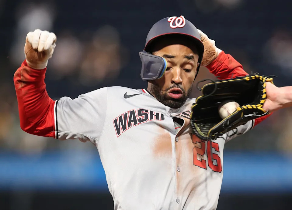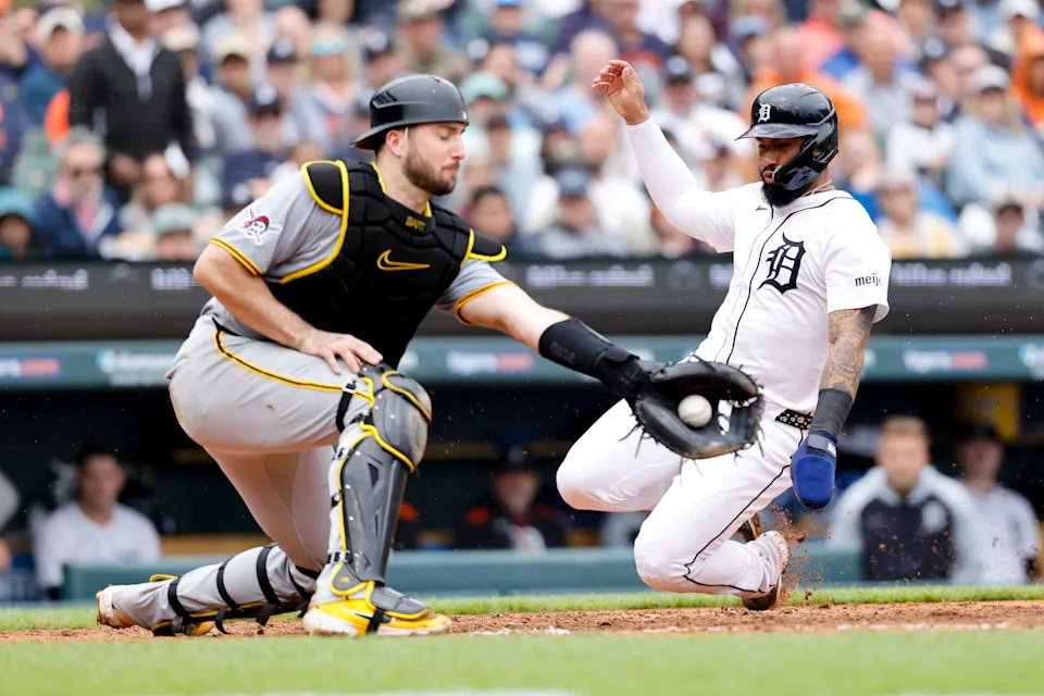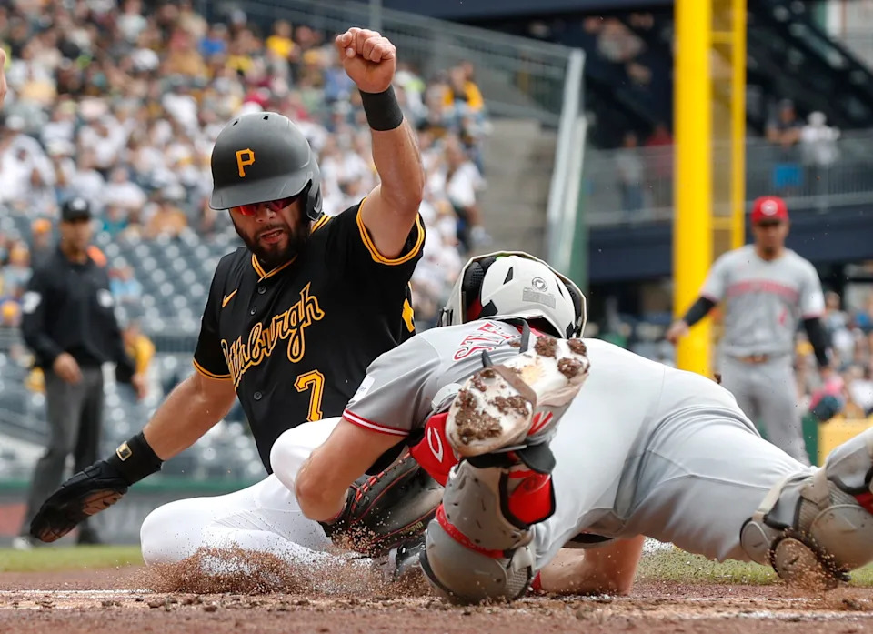 April 14: The Washington Nationals’ Nasim Nunez avoids a tag attempt by Pittsburgh Pirates starting pitcher Paul Skenes as he advances to third base during the sixth inning at PNC Park. The Pirates won the game, 10-3.