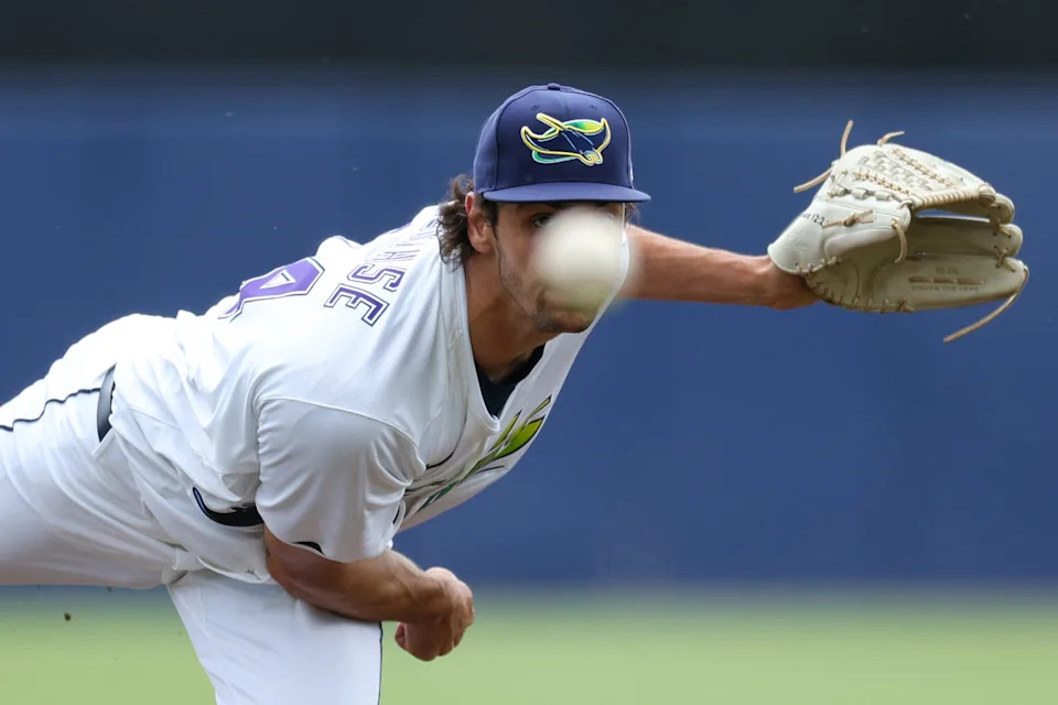 March 31: Tampa Bay Rays pitcher Drew Rasmussen throws a pitch against the Pittsburgh Pirates during the fourth inning at George M. Steinbrenner Field. The Rays won the game, 6-1.