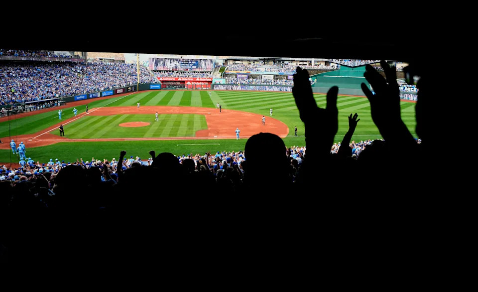 March 27: Fans cheer after a home run by the Kansas City Royals’ Vinnie Pasquantino during the third inning against the Cleveland Guardians at Kauffman Stadium. The Guardians won the game, 7-4, in 10 innings.