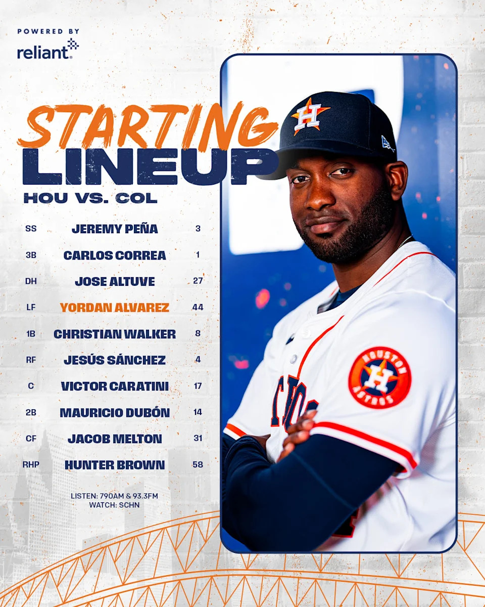 Taking the mound for the Astros will be RHP Hunter Brown.