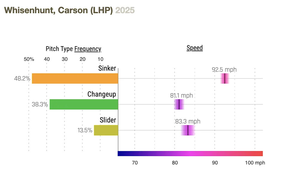 Carson Whisenhunt was the Giants’ second-round pick in 2022 out of East Carolina. He was a Top 100 MLB prospect in 2024 and played in the Futures Game in both 2023 and 2024.