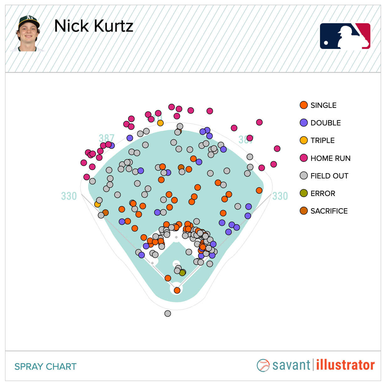 There are other ways to parse a swing further, though. Kurtz has great opposite field power and he lets the ball travel closer to him. You can see it in his spray chart: