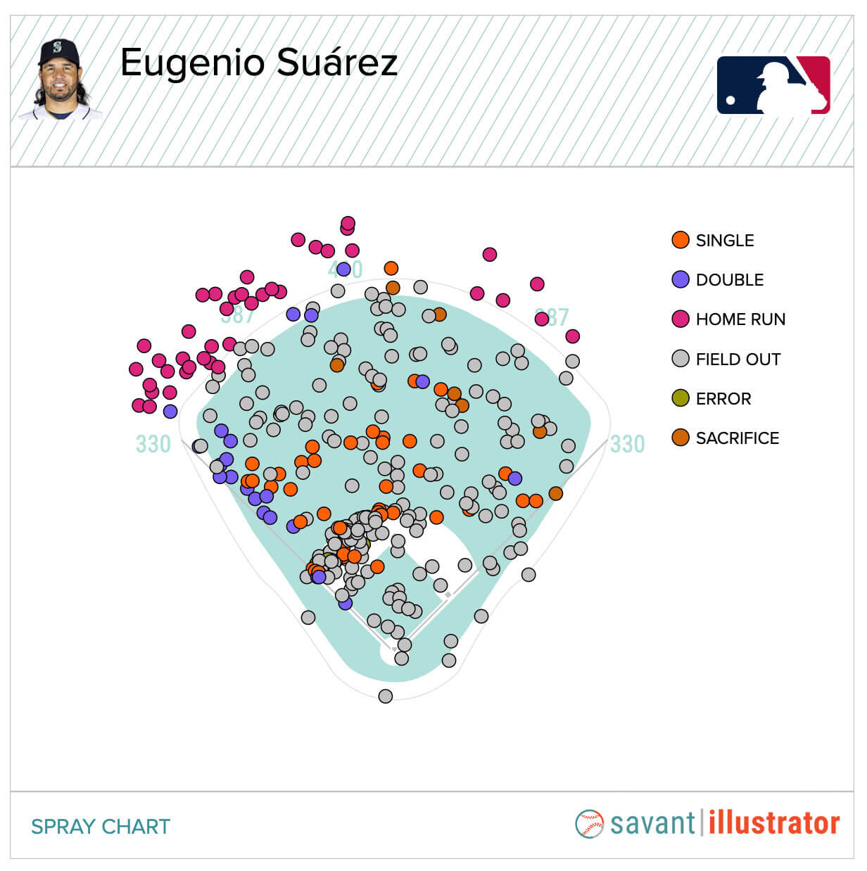 This is very different than Eugenio Suárez, a right-handed hitter who goes and gets the ball a whopping 10 inches closer to the pitcher.