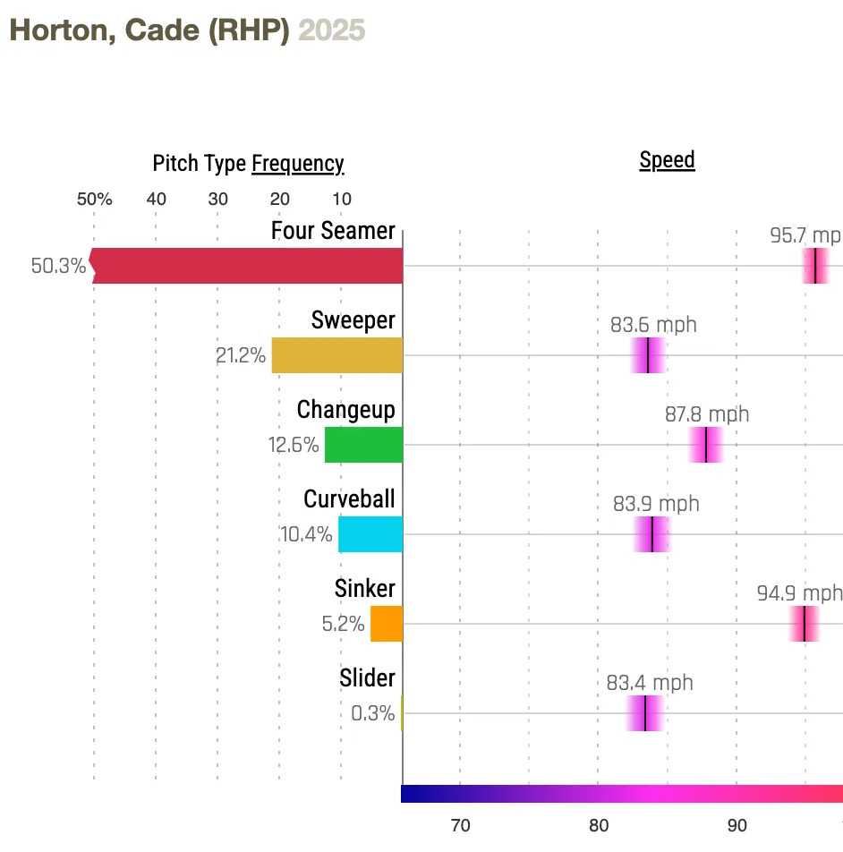 Cade Horton, last seven starts: 0.49 ERA, 0.784 WHIP, just one home run allowed in 37 innings.