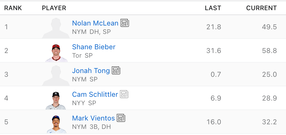 Now we all know how Pitcher List feels about debuts; they are genuinely to be avoided due to the combination of nerves and adrenaline making them very much boom or bust outings. For Payton Tolle and Jonah Tong, they lucked into getting some pretty solid matchups for their first outings, the kind that would make you reconsider that rule. Both really started strong, with Tolle in particular looking strong. For Tong, he got the best thing a pitcher can get in their debut: run support. The Mets were terrorizing the Marlins, which allowed Tong to cruise in his five innings. Tong only allowed six hits and one earned run, and grabbed six strikeouts in a winning effort. It was a great start, even if it was in a fairly low-pressure situation. As for Tolle, he had the arguably better start, as even though he allowed two earned runs in five-and-two-thirds innings, he got 14 whiffs for eight strikeouts. His WHIP was also below 1.00, making it a seriously successful debut in real life and fantasy, even if his team unfortunately didn’t pull off the win.