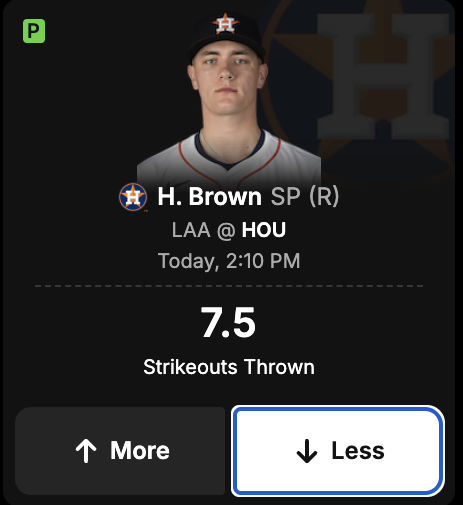 DraftKings Network projection: 55% likely to have LESS than 7.5 Strikeouts Thrown