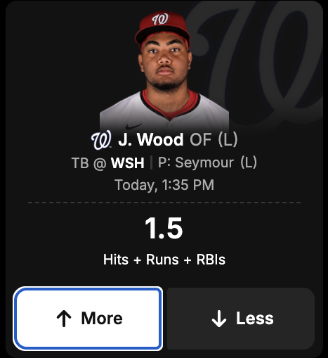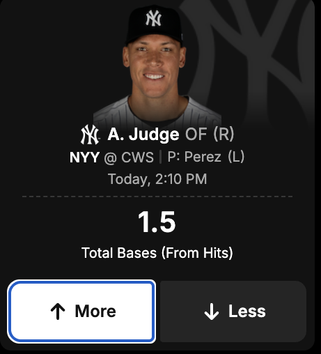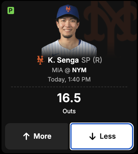 Create a Pick Set by choosing 2+ players from the same sport and Pick Group (a set of picks available from a group of set competitions). For each player, simply select if you think they’ll have more or less than their listed stat projection. In each Pick Set, you can not pick the same player twice and you must pick players from at least two different teams.