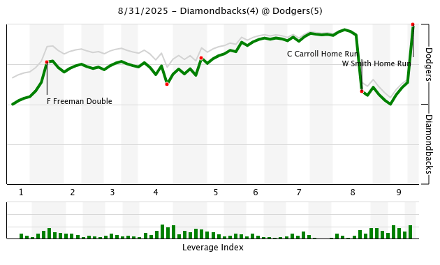 John Curtiss was in for Brandon Garcia in the Dodgers’ eighth, delivering a very nice one-two-three against Enrique Hernandez, Alex Call, and Alex Freeland. I was hoping, as were we all, that the replacement of Blake Treinen for Tanner Scott might yield more Dbacks runs, but this was not in our cards. And I won’t lie, when I saw it was Locklear, Thomas, and Lawlar up to bat the ninth, I wasn’t particularly optimistic that it would be. Again, nothing against them as people, but they really, really cannot hit, and that is a problem. But, hey, Will Smith can, even though he hasn’t been much of late, and he homered on a fly ball to center, and the Dodgers walked it off. 5-4 DODGERS, FINAL
