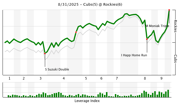 Game 137, August 31: Rockies 6, Cubs 5 (78-59)