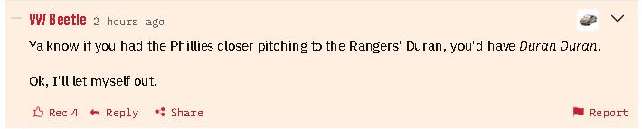 There was not much of an update after the game from Torey regarding Gurriel. “Right knee pain”, no diagnosis right now, and he will have imaging tomorrow. Burgos will too, though imaging at the ballpark didn’t show anything. As for the GDT, my overall demeanor was not helped by being locked out of my own Chading site with a redirect error for most of the second half. But comment of the night to VW Beetle: eighties musical references are almost an automatic winner if I’m recapping!