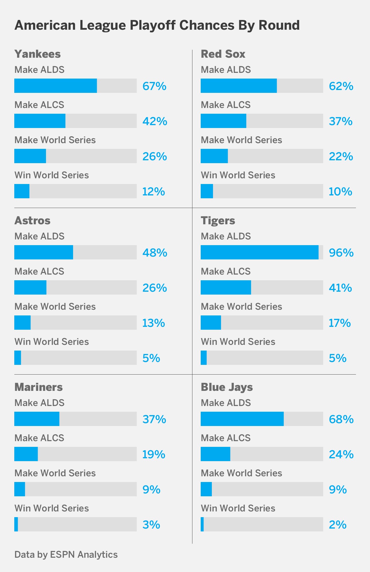 And what about when these teams get to the postseason? Here’s what their chances are for every round:
