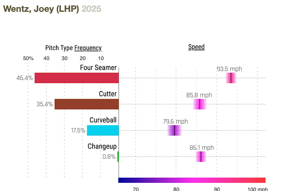 The Cubs faced him in a relief appearance in Pittsburgh April 29 and another in Minnesota July 8. Wentz has made eight starts (nine total appearances) for the Braves and the results have been decent: 3.43 ERA, 1.119 WHIP. In his last start he held the Marlins to one run in 6.2 innings, but in the one before that the Mets torched him for six runs in 3.1 innings.