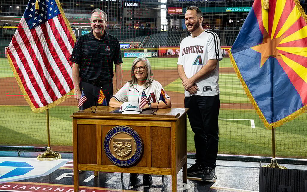 Sporting a Diamondbacks jersey, Hobbs signed HB 2704 on top of the Diamondbacks’ dugout to solidify the team’s future for the next three decades. It’s a future that includes renovations to Chase Field, which opened in 1998, the year the Diamondbacks made their MLB debut as an expansion team.