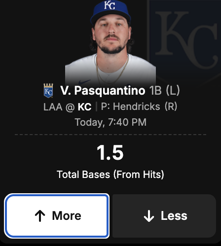 DraftKings Network projection: 54% likely to have MORE than 1.5 Total Bases