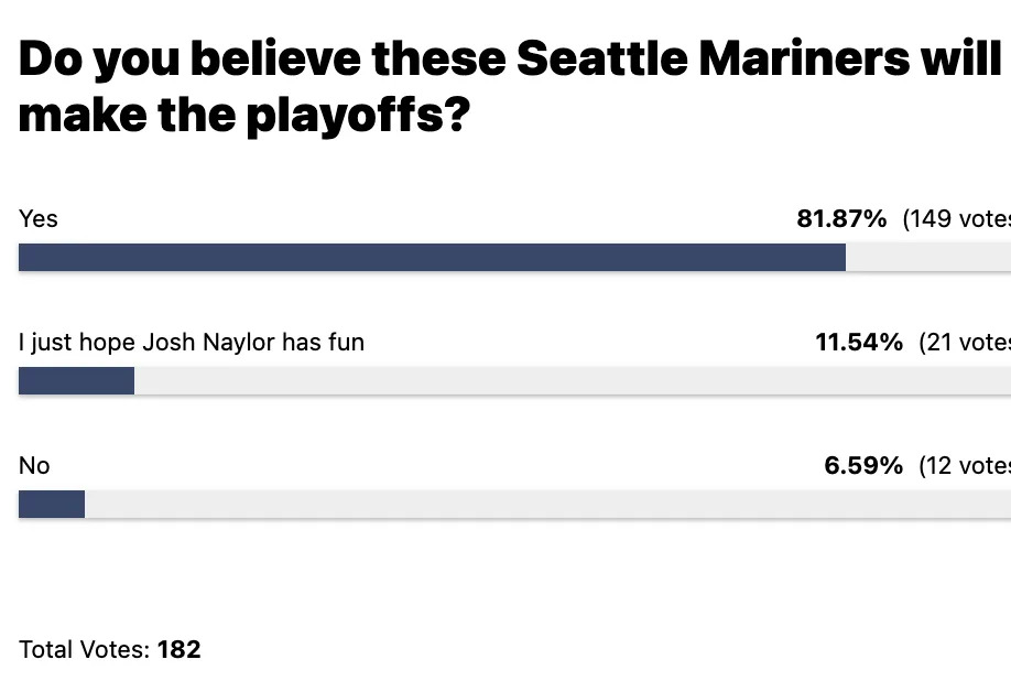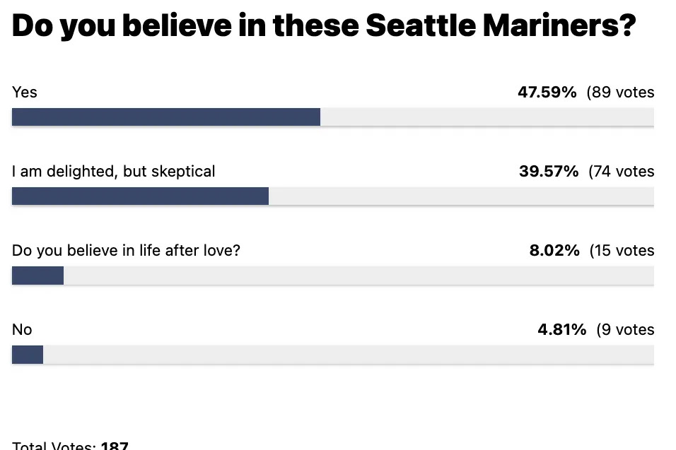 Only a 4.8% for the No vote! This is what I’m talking about, Mariners! We believe in y’all. The pessimism had gone dormant until this latest stretch.